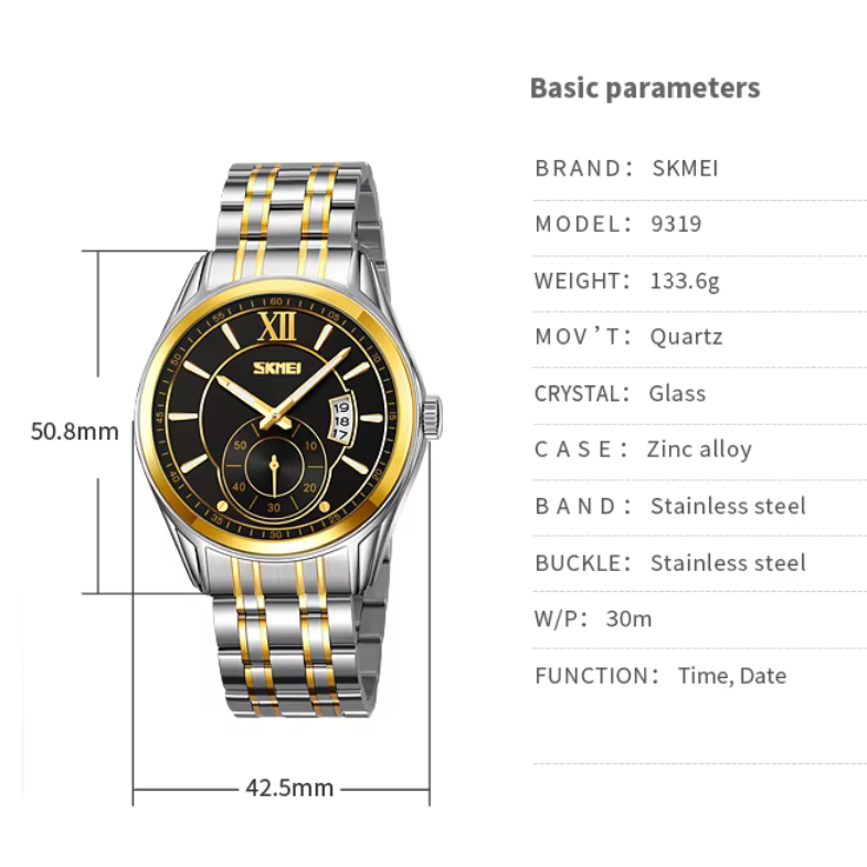 Часы наручные 9319TGDBK SKMEI, GOLD-BLACK