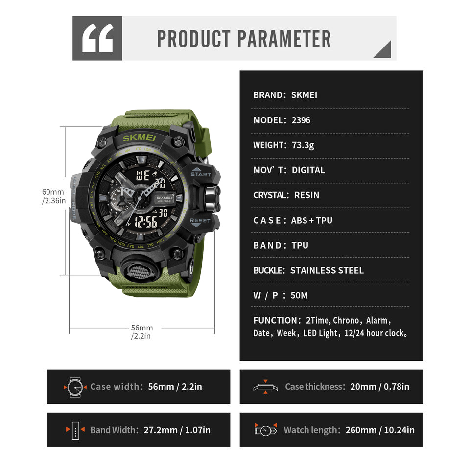 Часы наручные 2396AG SKMEI, ARMY GREEN - купить оптом