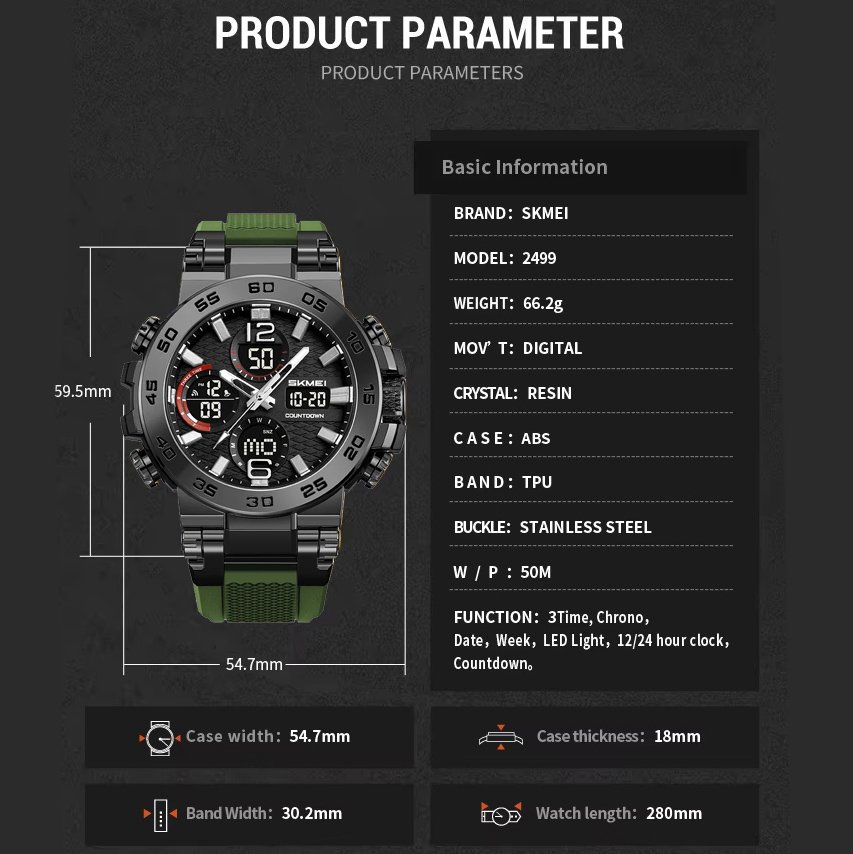 Часы наручные 2499AG SKMEI, ARMY GREEN