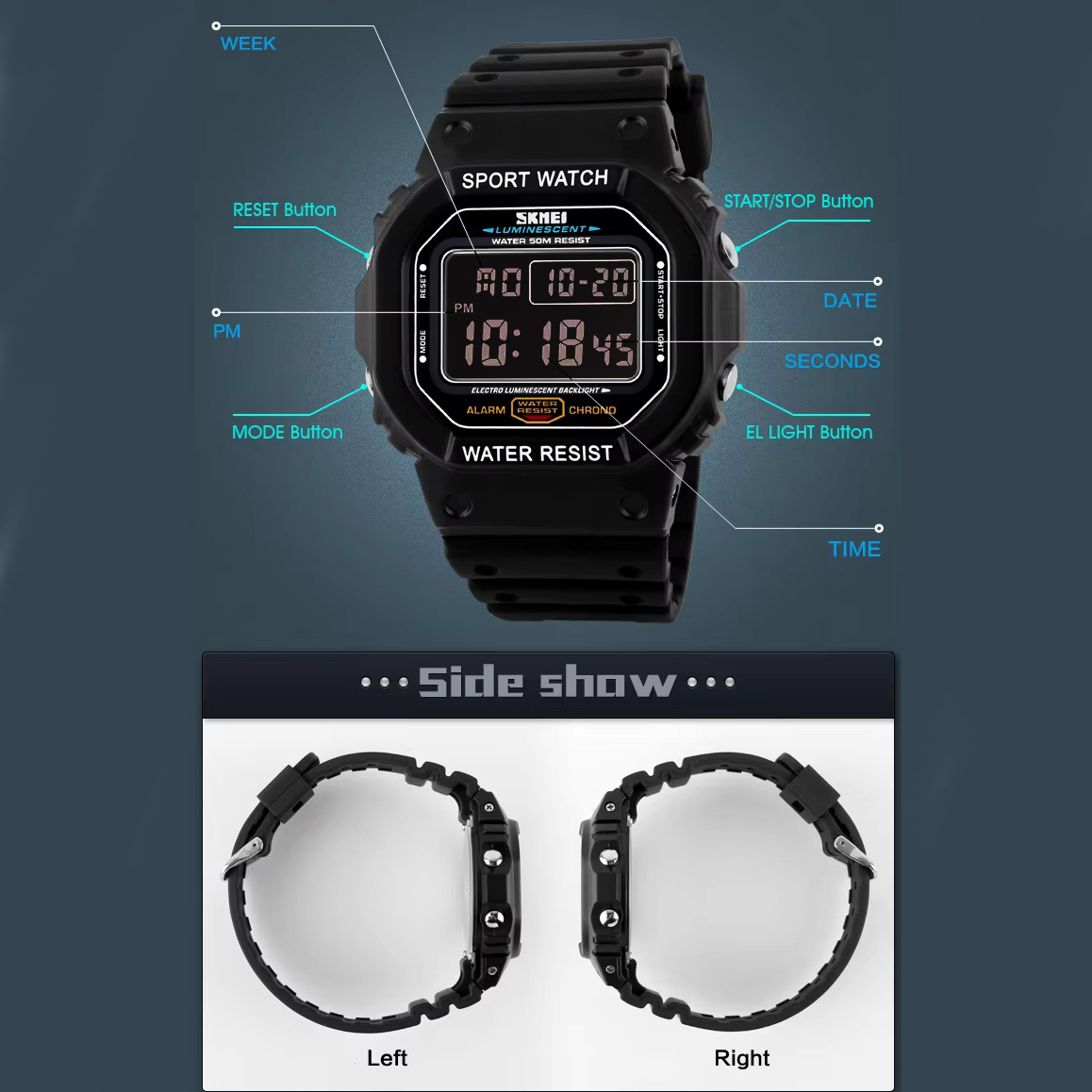 Часы наручные 1134BKBK SKMEI, BLACK/BLACK