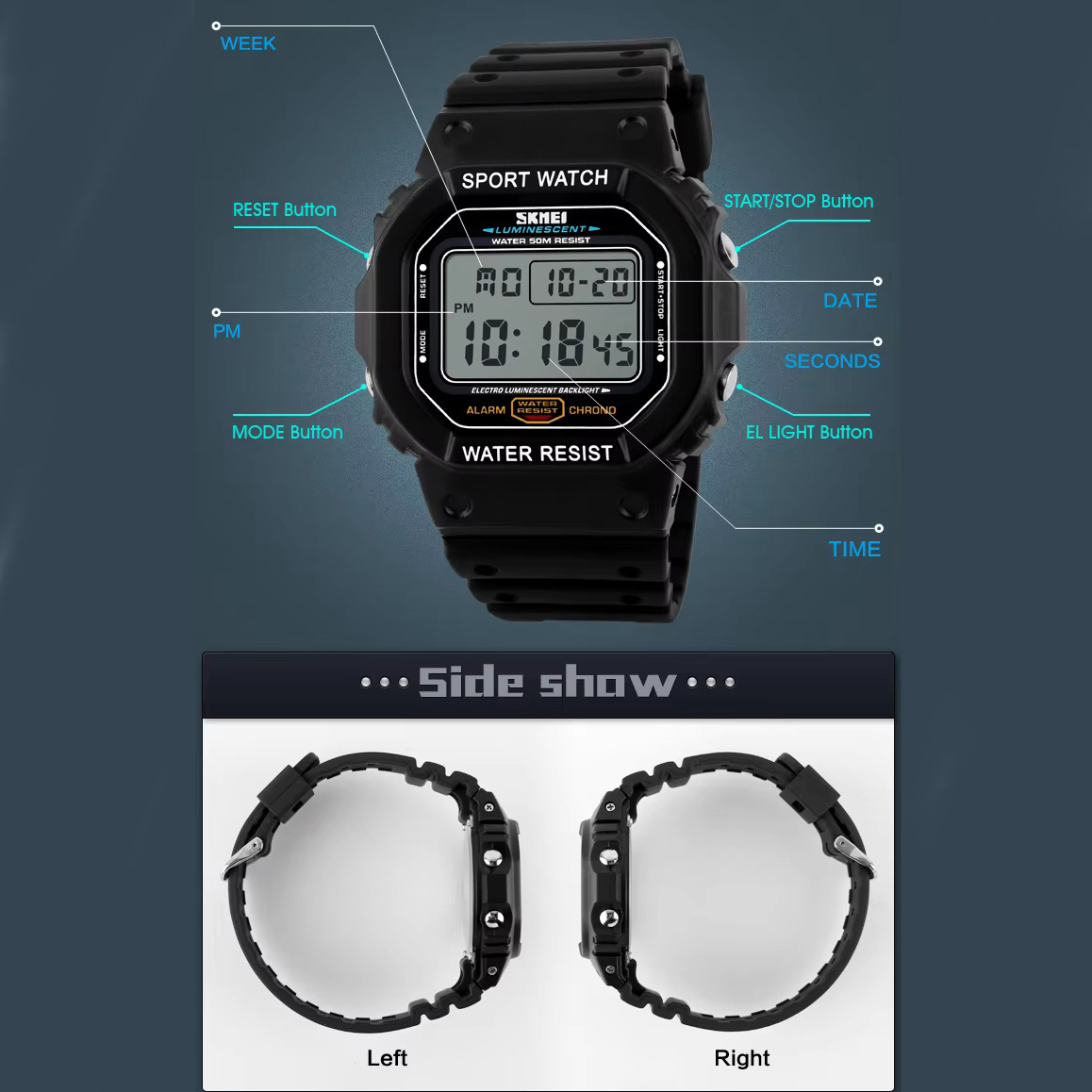 Часы наручные 1134BKWT SKMEI, BLACK/WHITE