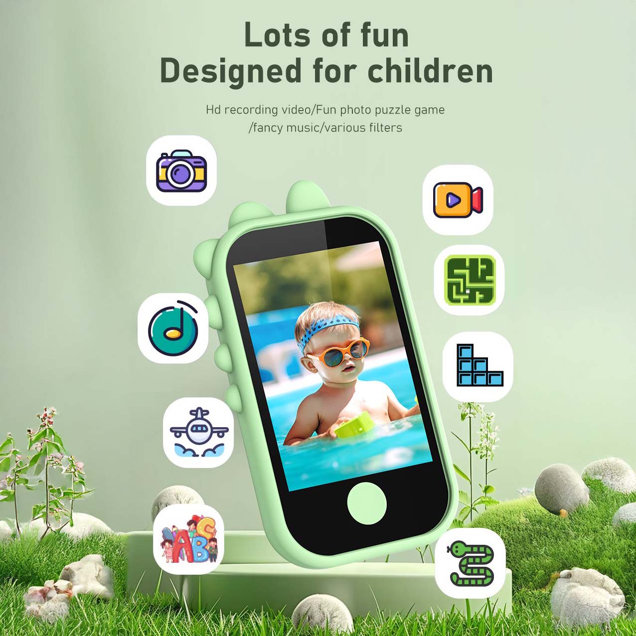 Детский развивающий «смартфон» — игрушка-телефон, созданная как безопасная альтернатива настоящему устройству. Предназначен для малышей и детей младшего школьного возраста, как подарок на Рождество, день рождения или другой праздник.
