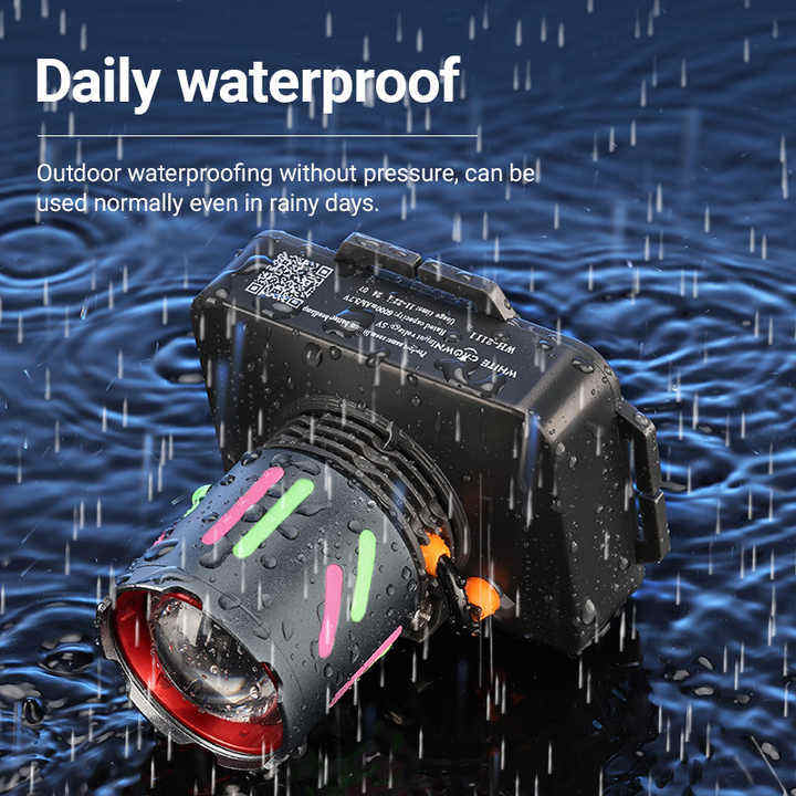 Фонарь налобный NIGHT VISION FLUORESCENCE WH-2111-TG, IPX44, Li-Ion аккум. 6000 mAh, ЗУ Type-C, zoom, Box