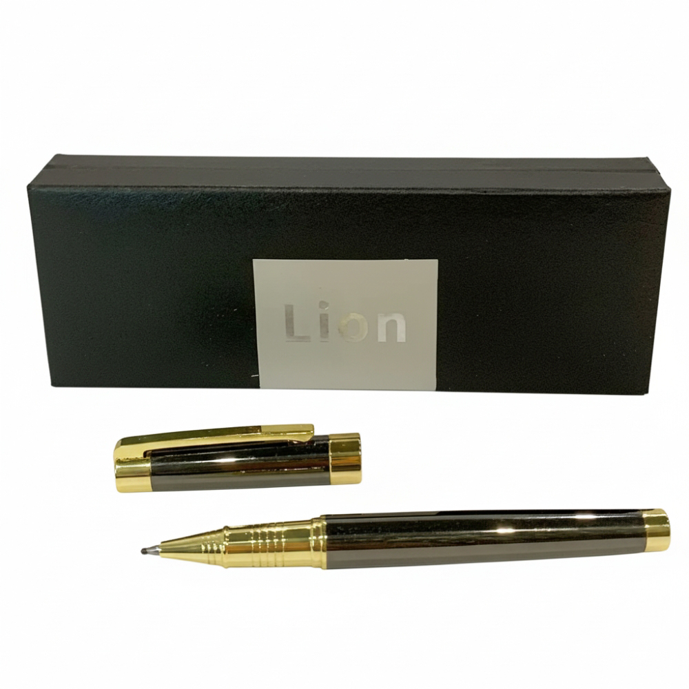 Элегантная и стильная ручка Lion &mdash. отличный выбор для повседневного использования и в качестве презента. Корпус выполнен в черном глянцевом покрытии с золотыми вставками, что придает аксессуару солидный и статусный вид.