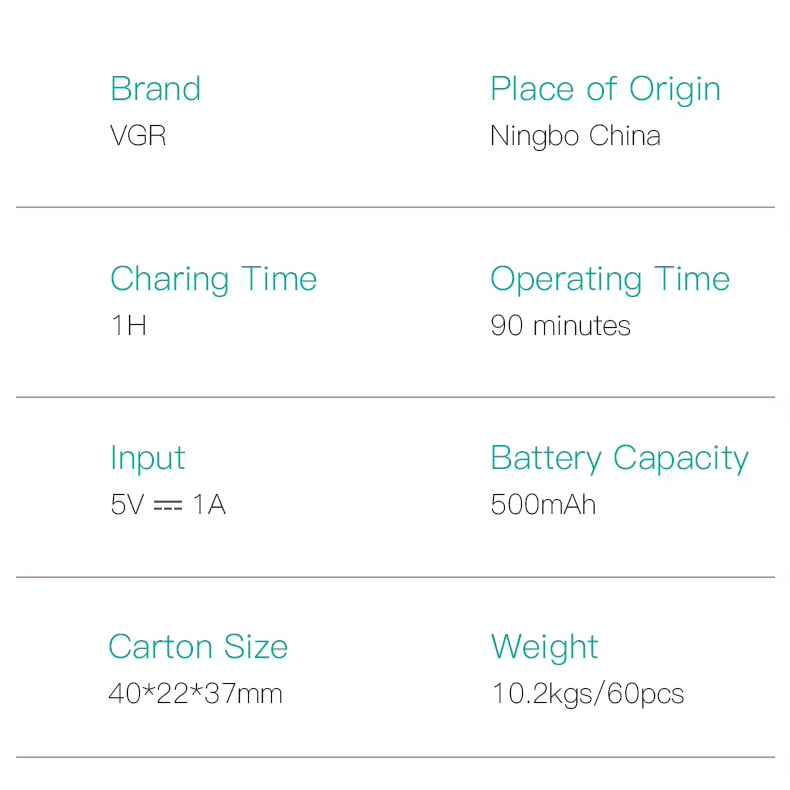 Электробритва VGR V-341 — это компактное и функциональное устройство, идеально подходящее для ежедневного сухого бритья. Благодаря своему портативному дизайну и удобной USB-зарядке, она станет отличным выбором для использования как дома, так и в поездках.