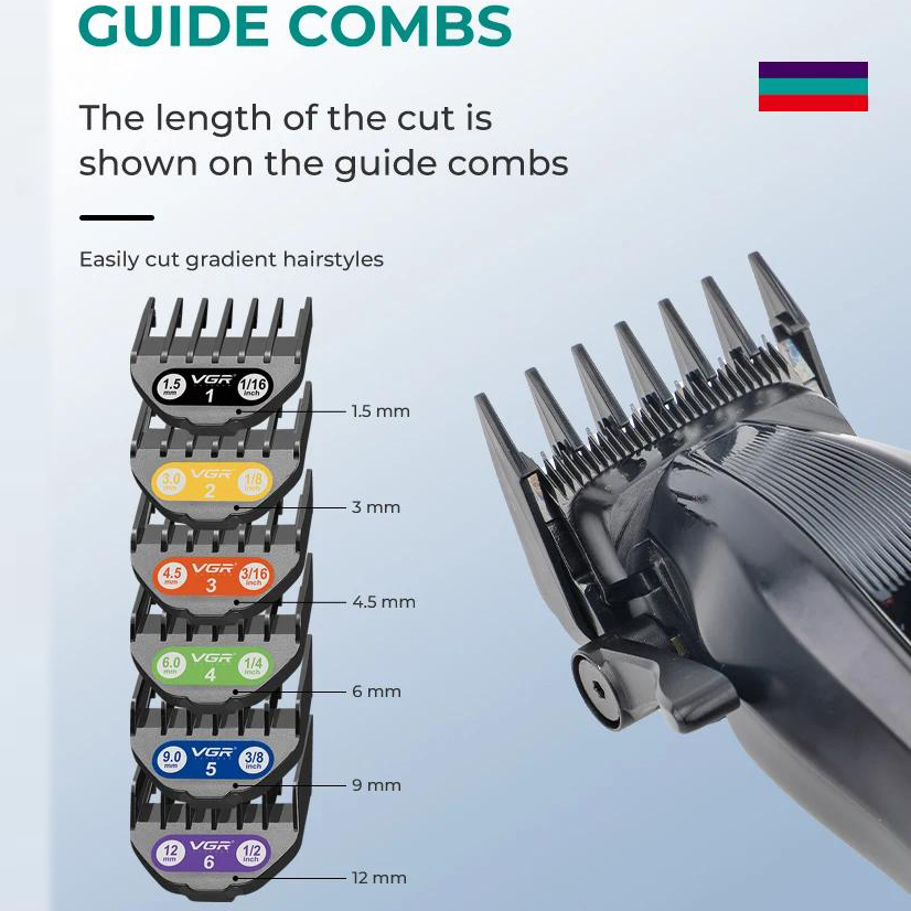 Аккумуляторная машинка для стрижки (clipper) VGR V-273 GOLD, 6 насадок, 8000 RPM, 3000 mAh, LED display