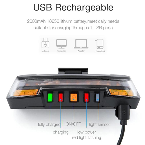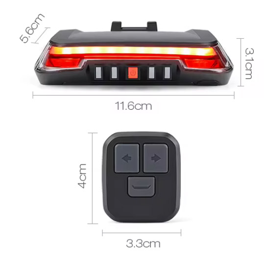 Велофонарь 0118-A9 с указанием поворотов (Red+Yellow), Waterproof, ЗУ Type-C, Li-Ion аккум., пульт управления, CR2032