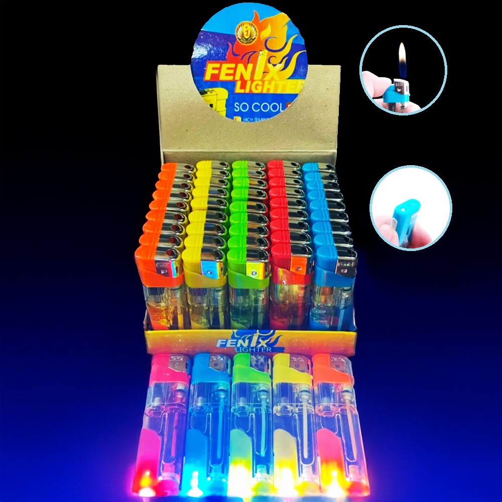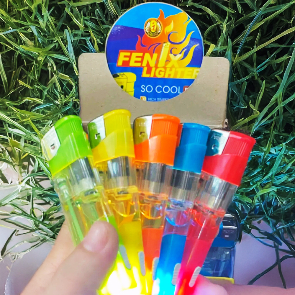 Зажигалка пьезо с фонариком прозрачная разноцветная FENIX LIGHTER 288-47 оптом в Украине