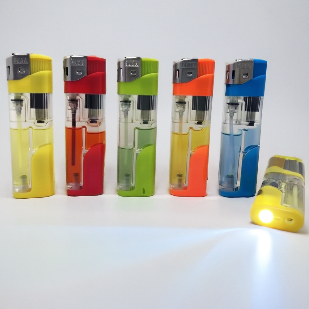 Зажигалка пьезо с фонариком прозрачная разноцветная FENIX LIGHTER 288-47