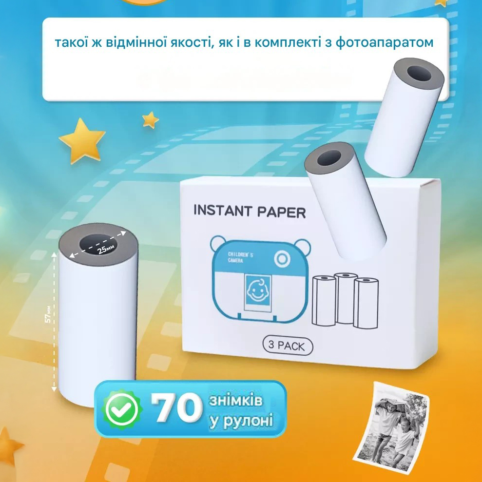 Термопапір для дитячого фотоапарата TPN-WB10, H57мм, D25мм