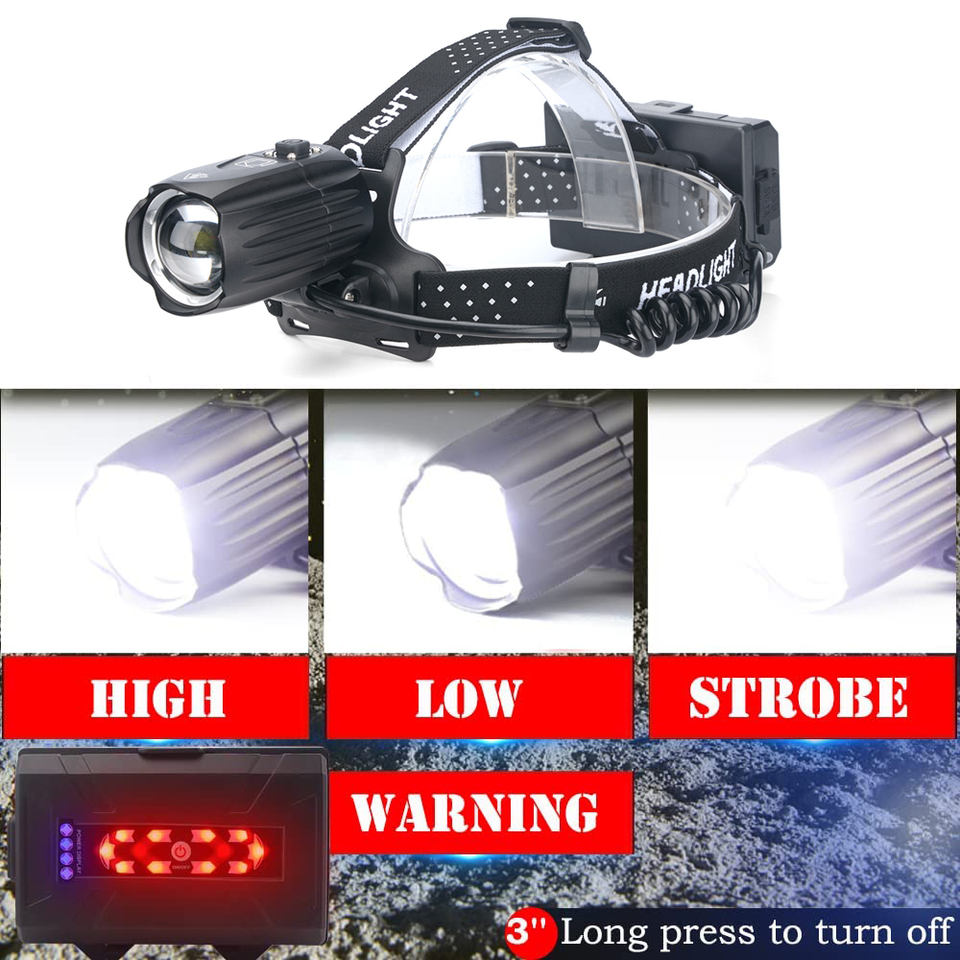 регульований кут нахилу голови ліхтаря, вологозахищений корпус, червоне світло сигнальне на акумуляторному блоці