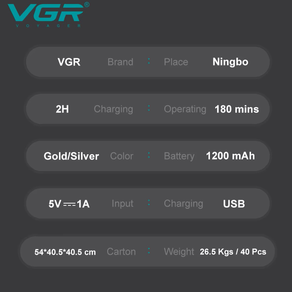 Електробритва VGR V-350 - це сучасний і функціональний прилад для сухого гоління, що ідеально підходить для щоденного догляду за собою. Її стильний сріблястий дизайн та компактні розміри роблять її зручною для використання вдома та у поїздках.