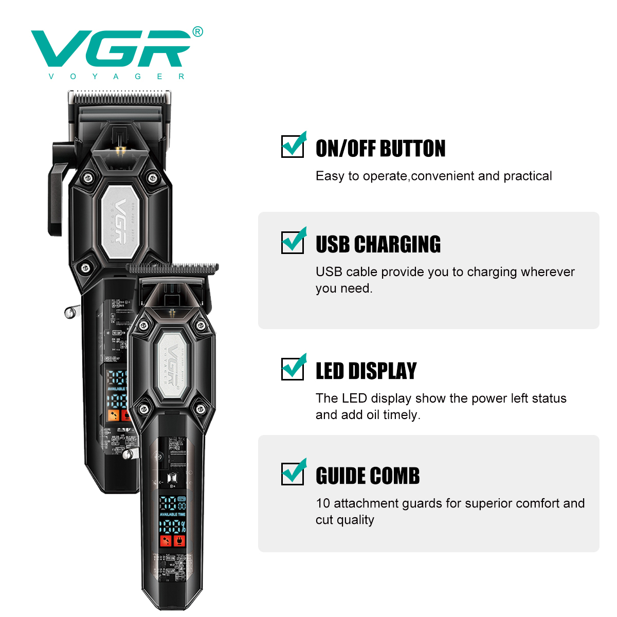 Комплект VGR 2 в 1 V-600&900 - це надійний вибір для тих, хто цінує якість, функціональність і зручність в одному пристрої. Він забезпечує професійний догляд за зовнішністю у домашніх умовах.