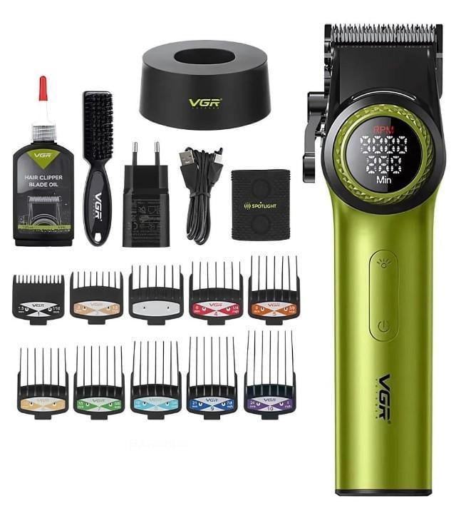 Акумуляторна машинка для стрижки VGR V-001 - це професійний інструмент, призначений для якісного та комфортного догляду за волоссям та бородою. Її ергономічний металевий корпус та сучасний дизайн забезпечують зручність у використанні, а потужний роторний мотор з 21 режимом швидкості (від 7000 до 9000 об/хв) дозволяє підібрати оптимальний режим роботи для різних типів волосся та стилів стрижки.